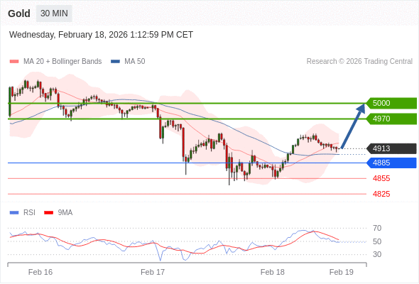 交易策略: 在 4885 之上,看涨,目标价位为 4970 ,然后为 5000 。