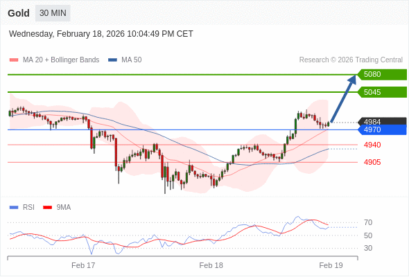 在 4970 之上,看涨,目标价位为 5045 ,然后为 5080 。
