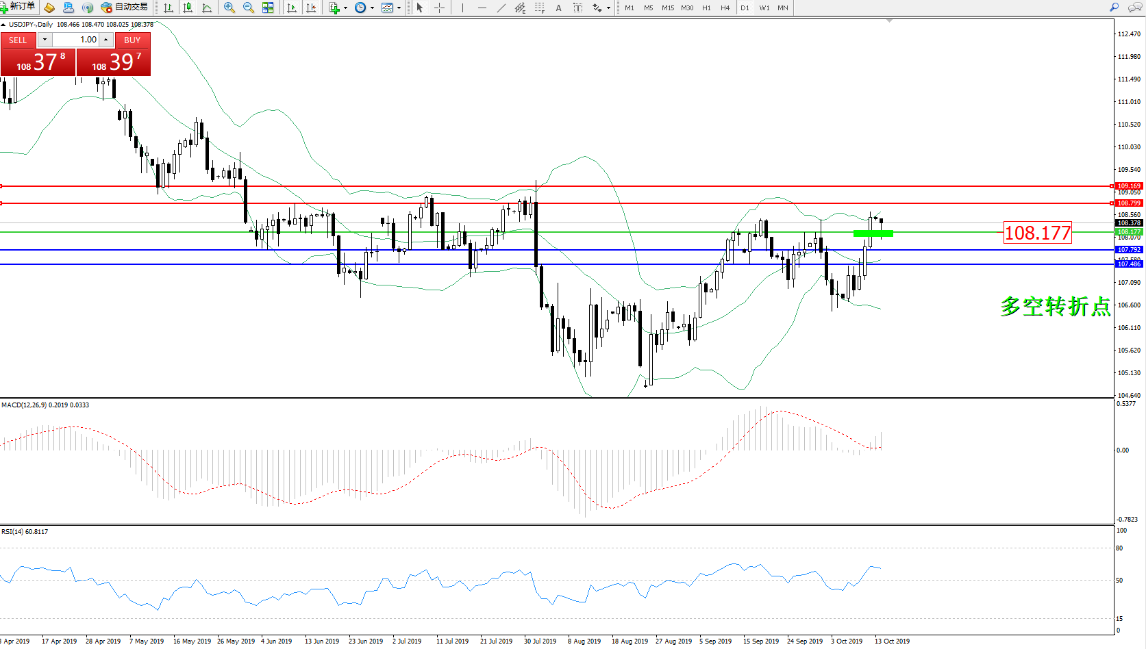 美元兑日元现报108.37,基本走平,整体市场情绪变动仍反复,来自全球贸易局势的消息多空各有,而脱欧方面也变得不如之前那么乐观,整体美元指数回升,全球股市走高,日元避险吸引力有限。来到日本的美国著名投资家吉姆·罗杰斯接受了《日经Veritas》的采访。他指出日元面临各种误解,例如被视为安全资产等,认为日元价值长期来看将明显下滑,敲响了警钟。