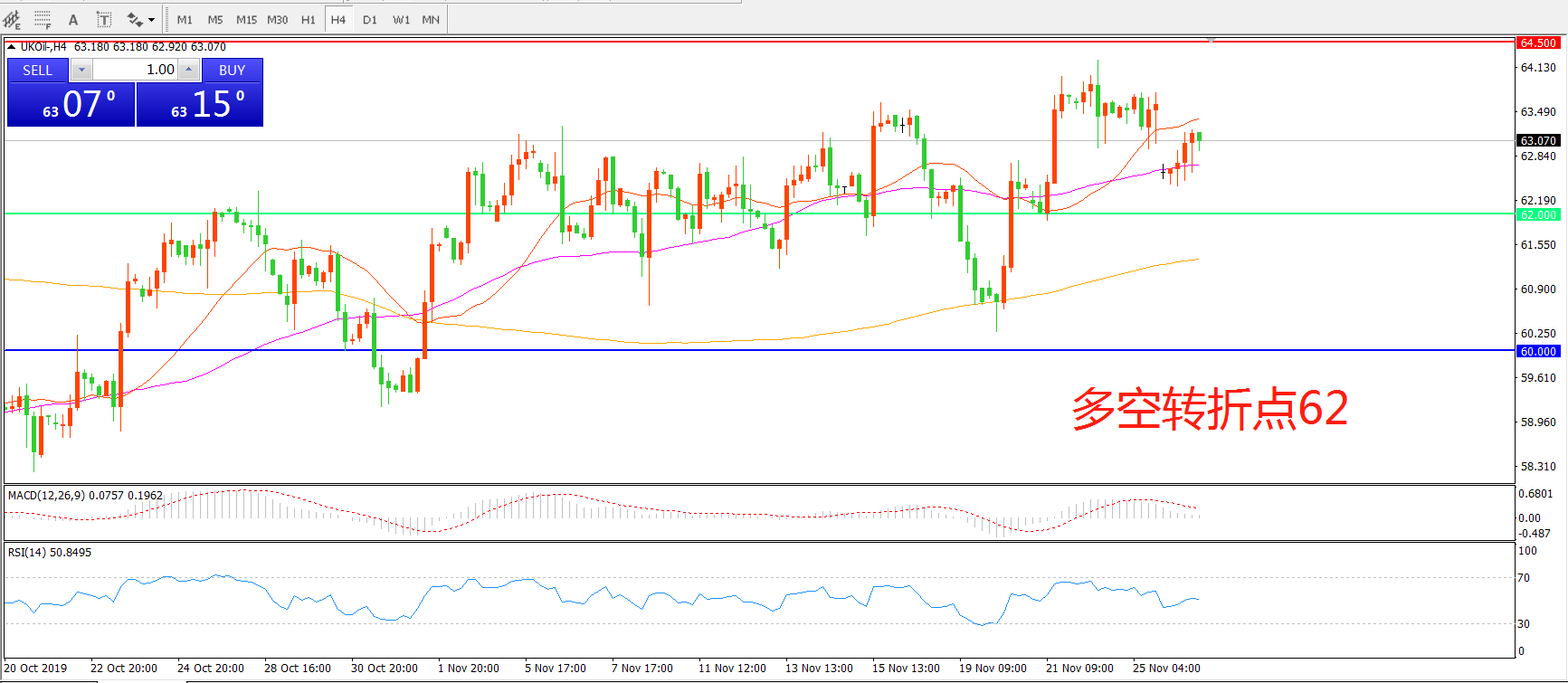 多空转折点:62.00