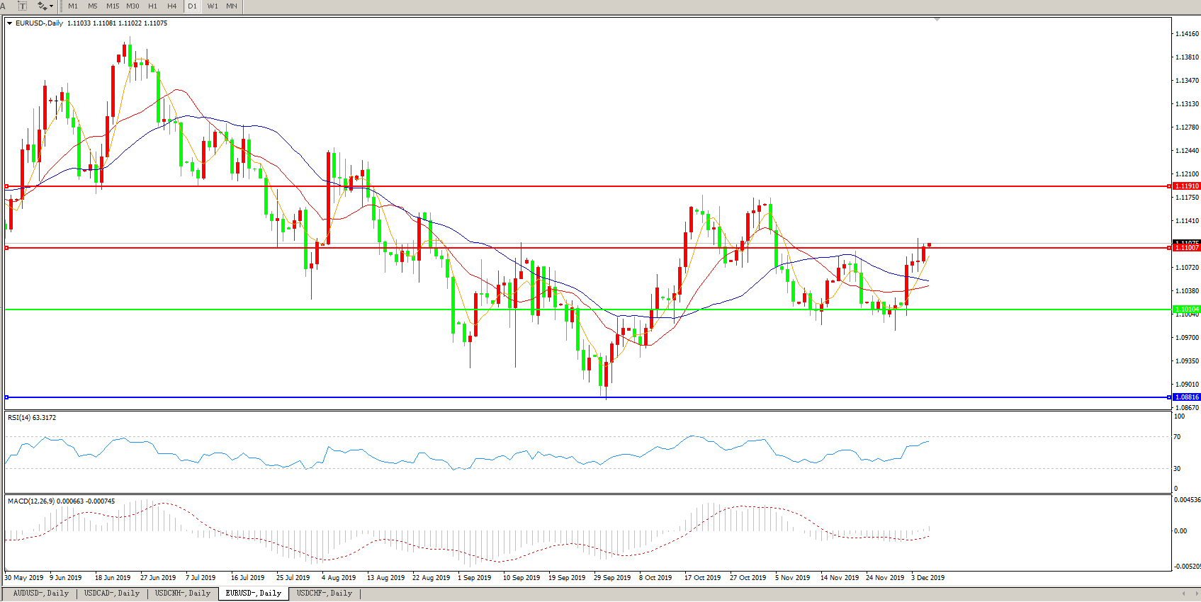 欧元兑美元EURUSD   日线图: