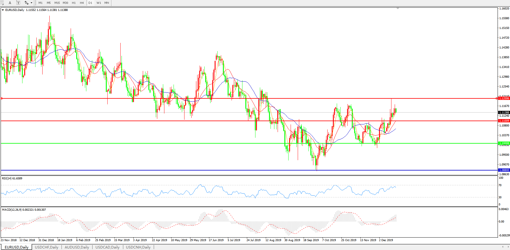 交易策略:1.1100上方看涨,目标1.1200、1.1300