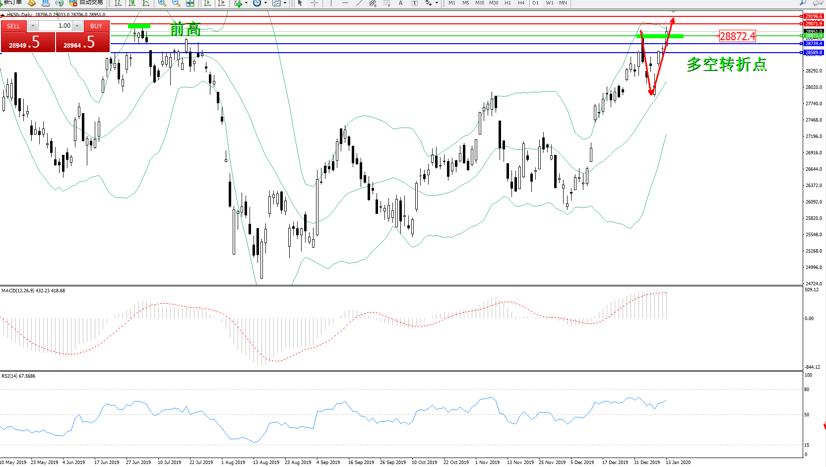 香港恒生指数113日(周一)收盘上涨316.74点,涨幅1.11%,报28954.94点;港股早上高开134点后,沽盘涌现,恒指低见28671。随后有买盘追入而再倒升,高见28940,最多升301点。短期内港股上行的依然意愿较强,本周市场将憧憬中美签订首阶段贸易协议,或继续提振市场情绪。恒指短期上升动力减弱,虽然可能存在调整压力,但春季行情并不会因此结束。