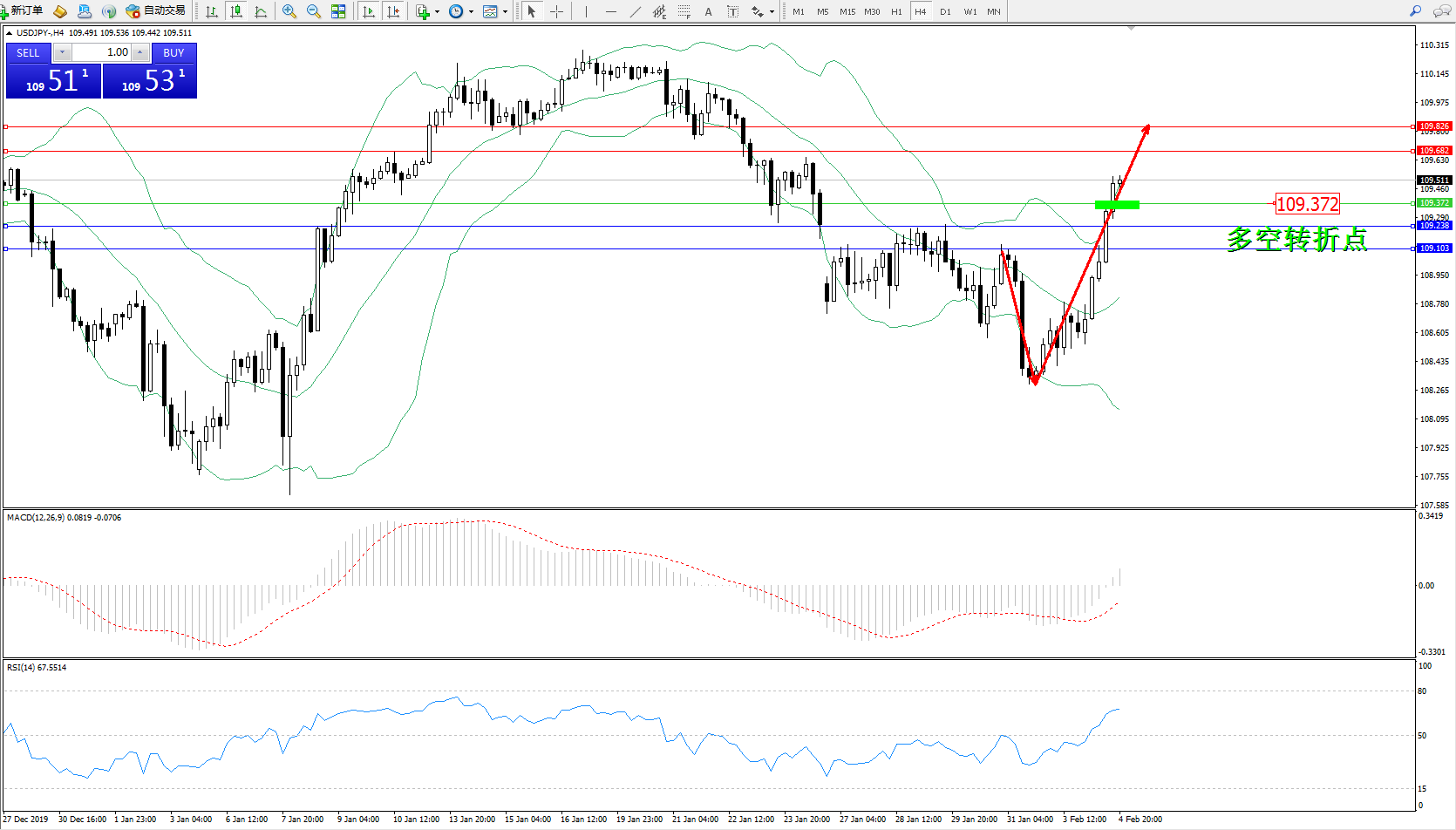 交易策略:109.372上方看涨,目标109.682109.826