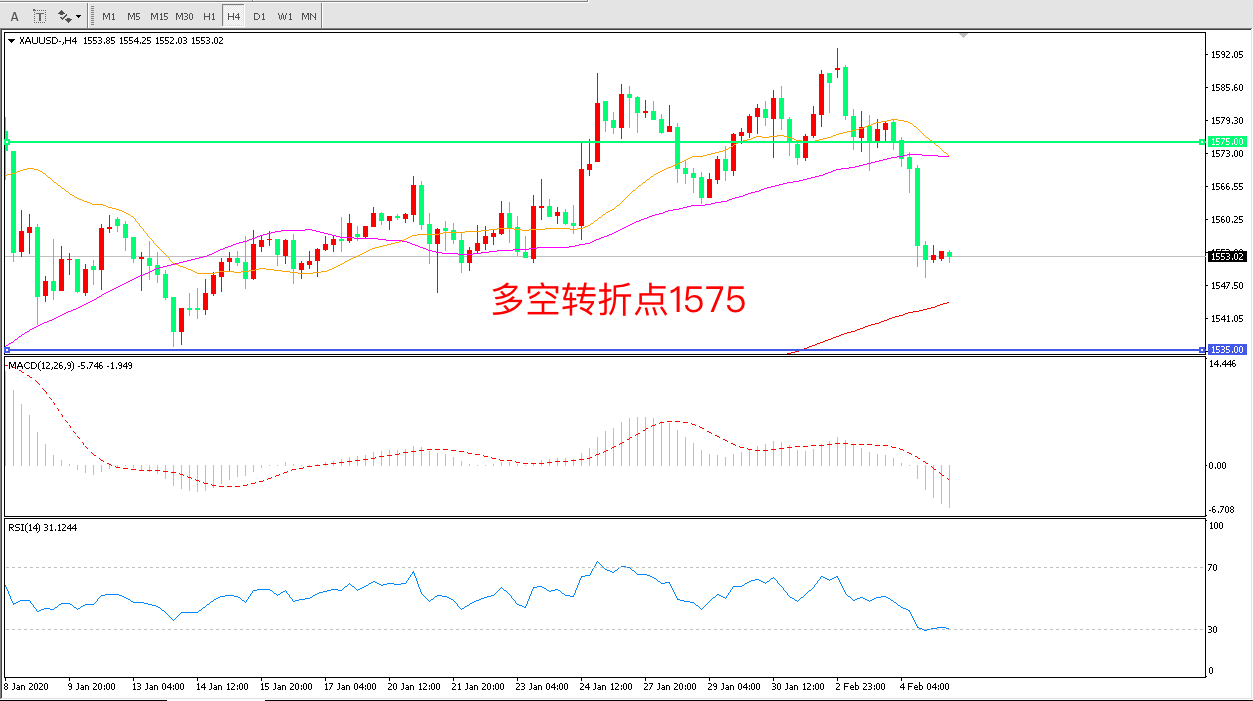 交易策略:在1575.00之下看跌,目标1535.00   1500.00