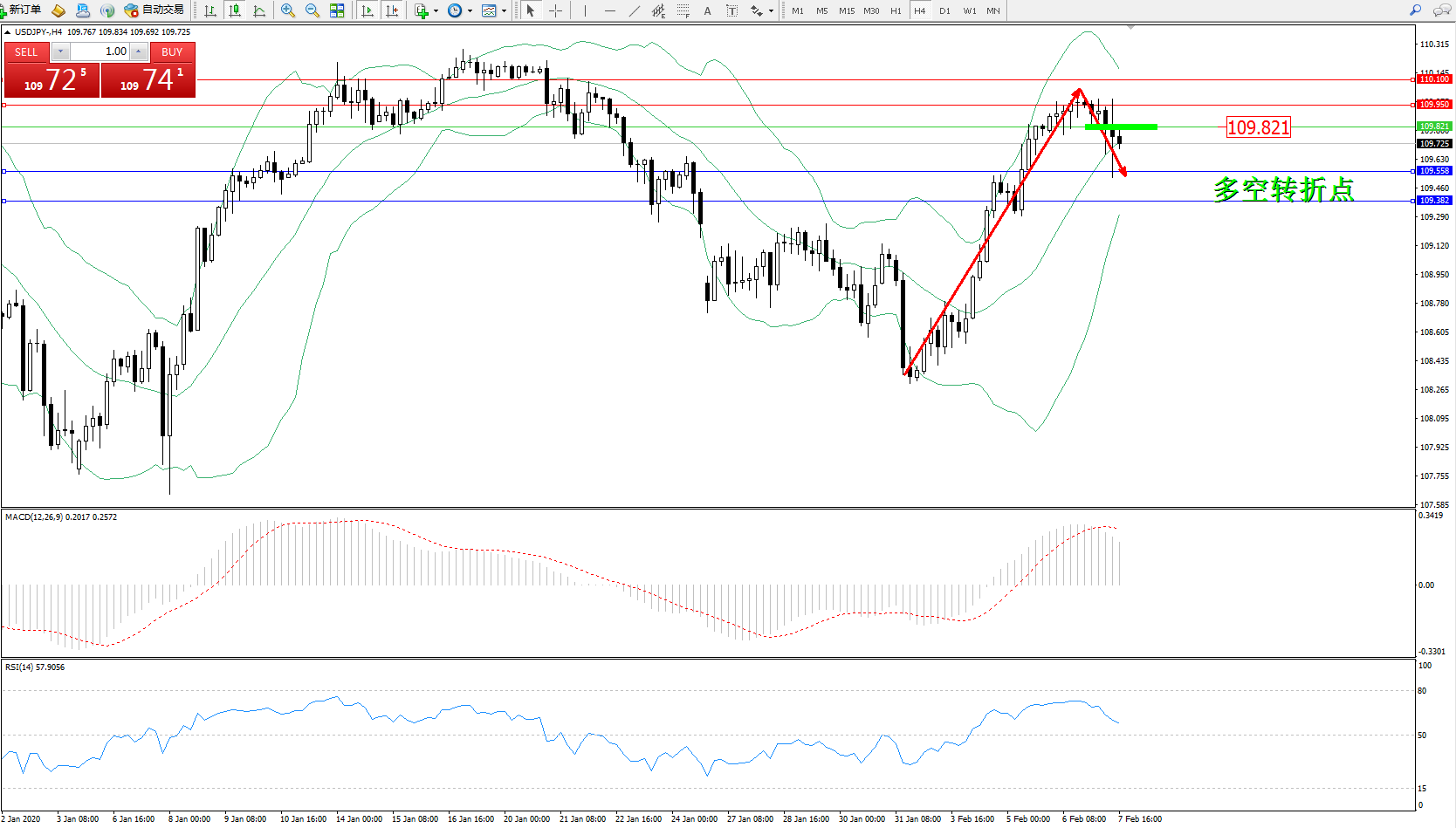 交易策略:109.821下方看跌,目标109.558109.382