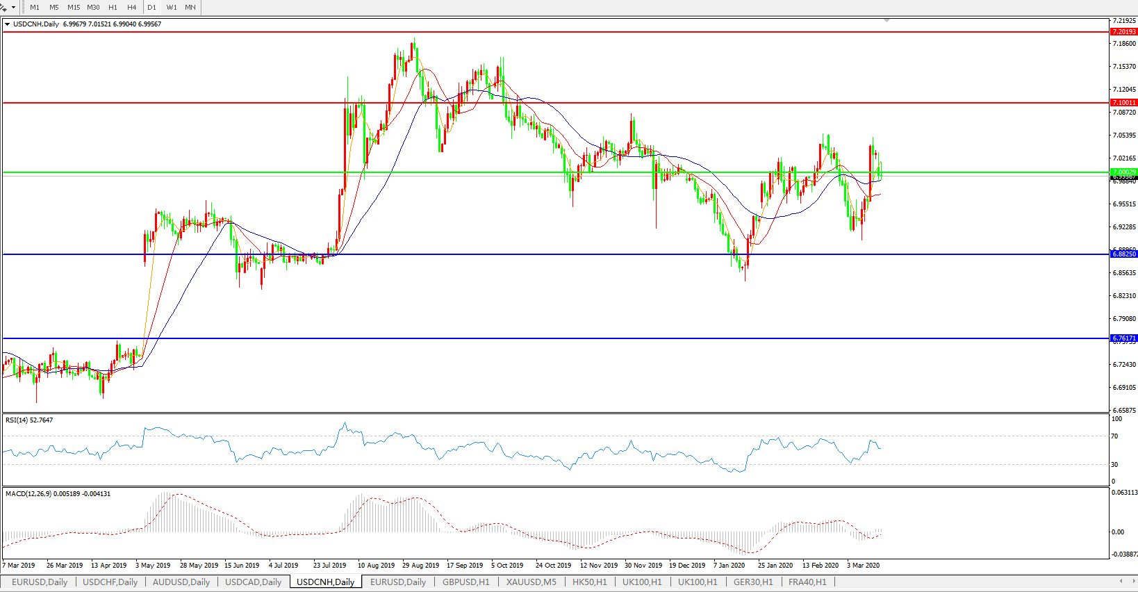 技术面简析:日图均线逐步呈多头排列,汇价小幅回落整理在7.0关口徘徊,MACD下穿0轴但量能0轴上方稍显不足,RSI小幅回落,预计短期汇价或将延续上行态势。