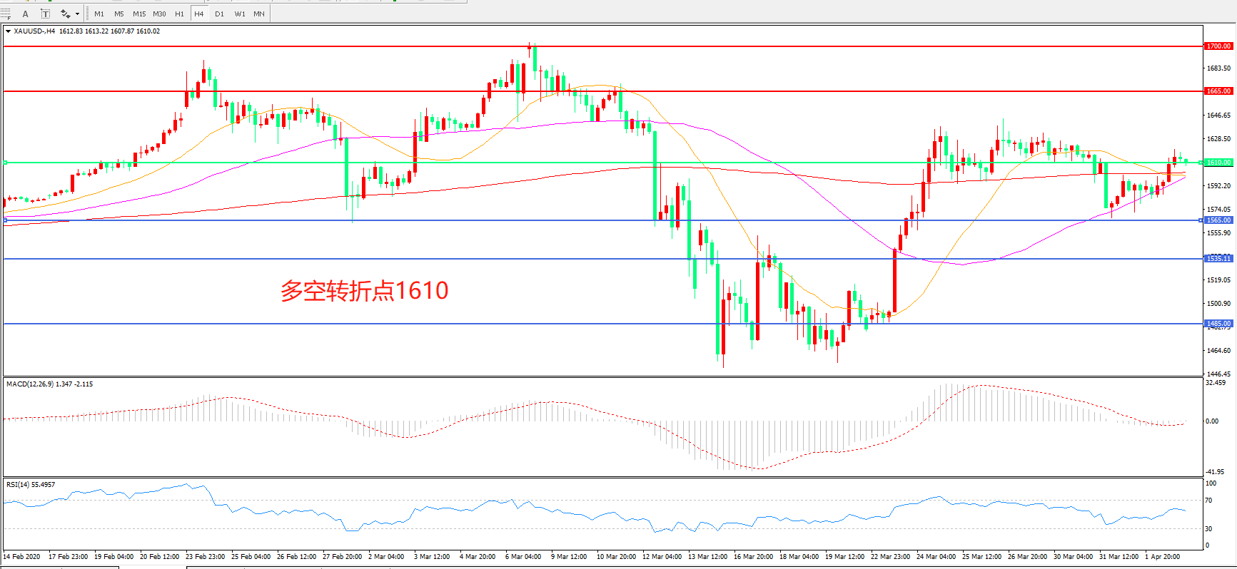 多空转折点:1610.00