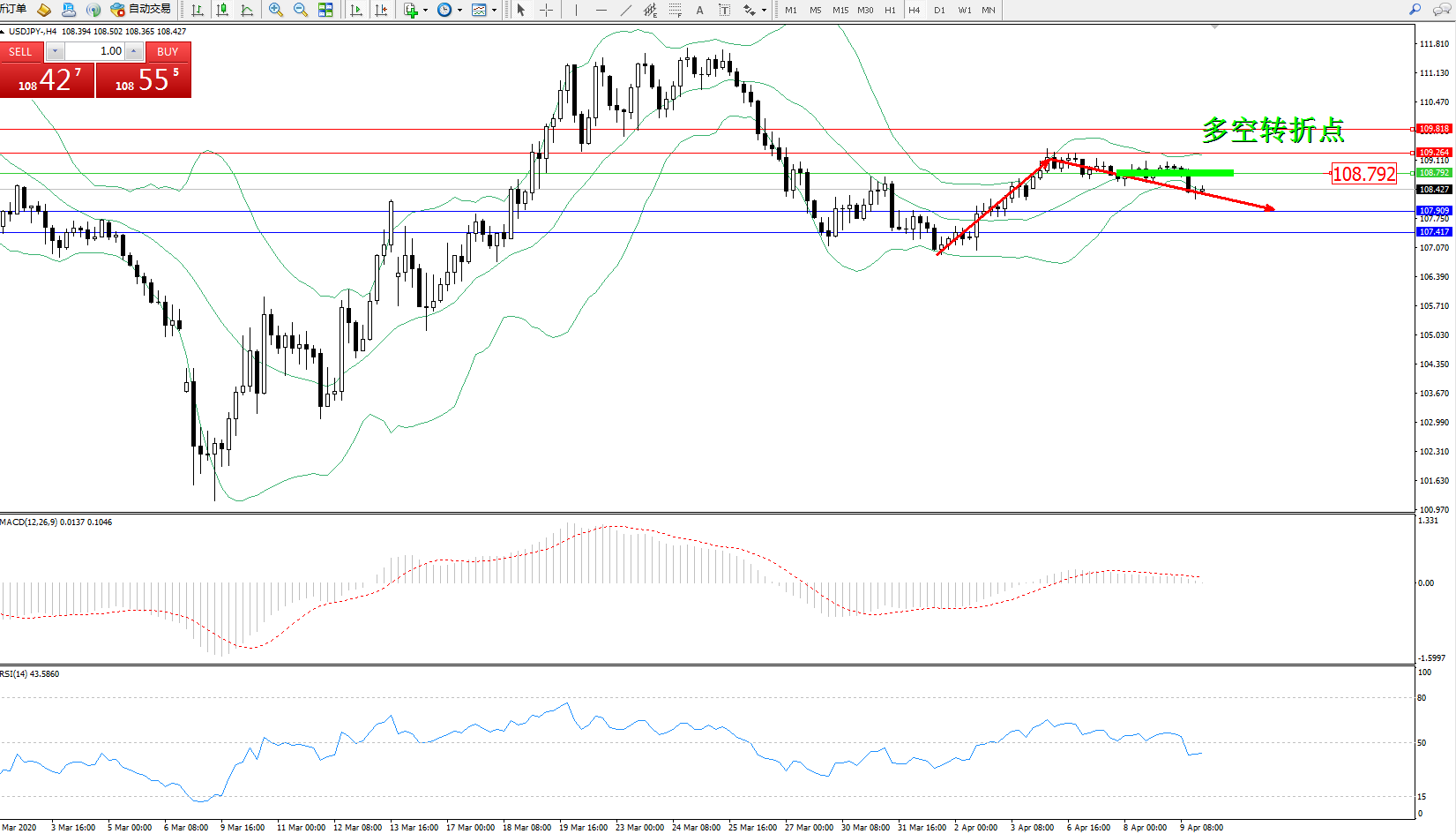 美元兑日元跌0.08%至108.46;周五(4月10日)为2020年耶稣受难日,西方国家多数市场休市,外汇市场整体波动有限,油市方面传来一定利多消息,美元指数保持弱势,下周将有大量经济数据公布,全球投资者会透过假日经济受到冲击的状况,进一步研判欧美经济所受的冲击程度,这意味着在下周市场恢复交易后,避险情绪仍有大概率会卷土重来,各方断然不可对此掉以轻心。