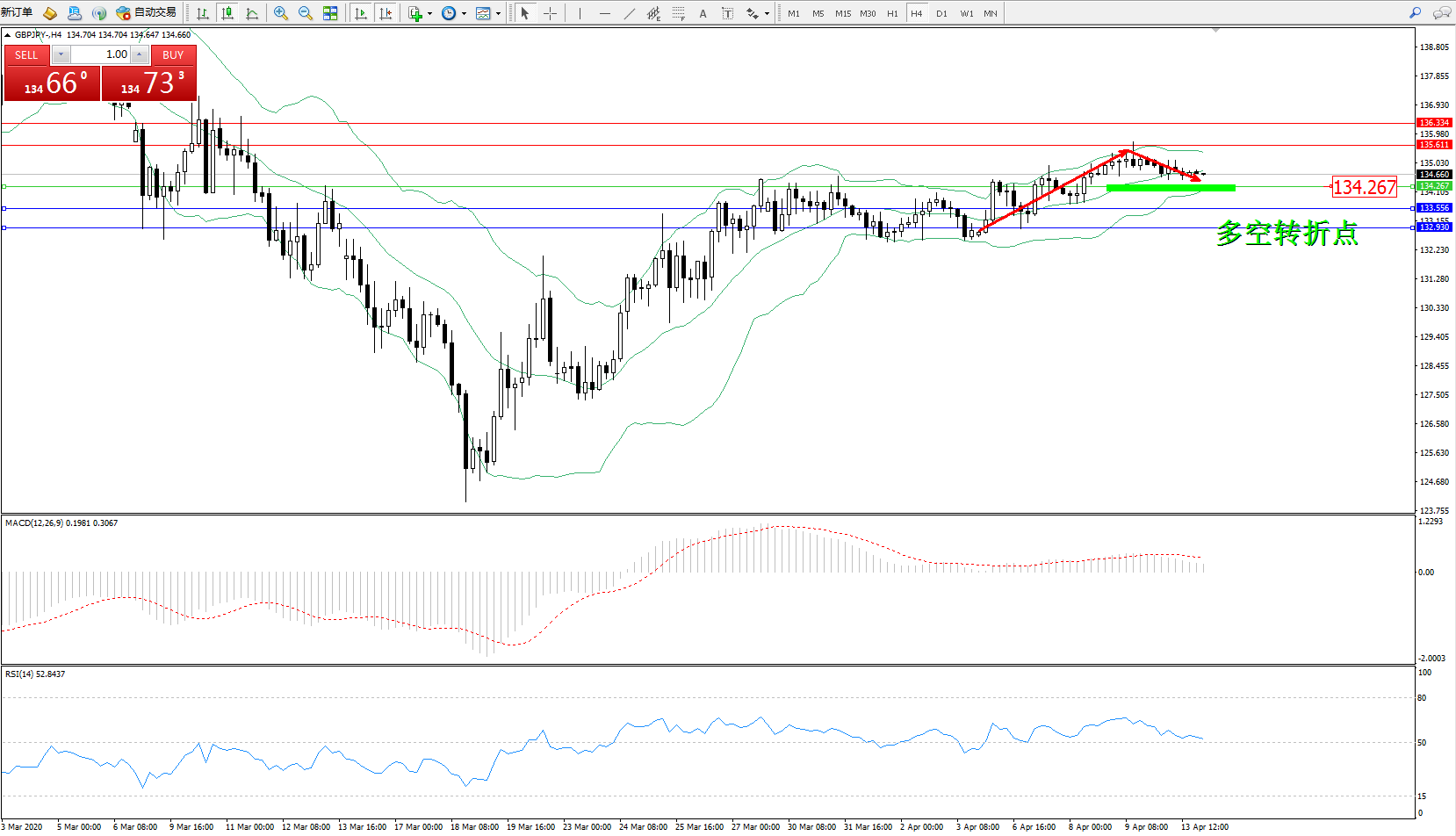 易策略:134.267上方看涨,目标135.611136.334