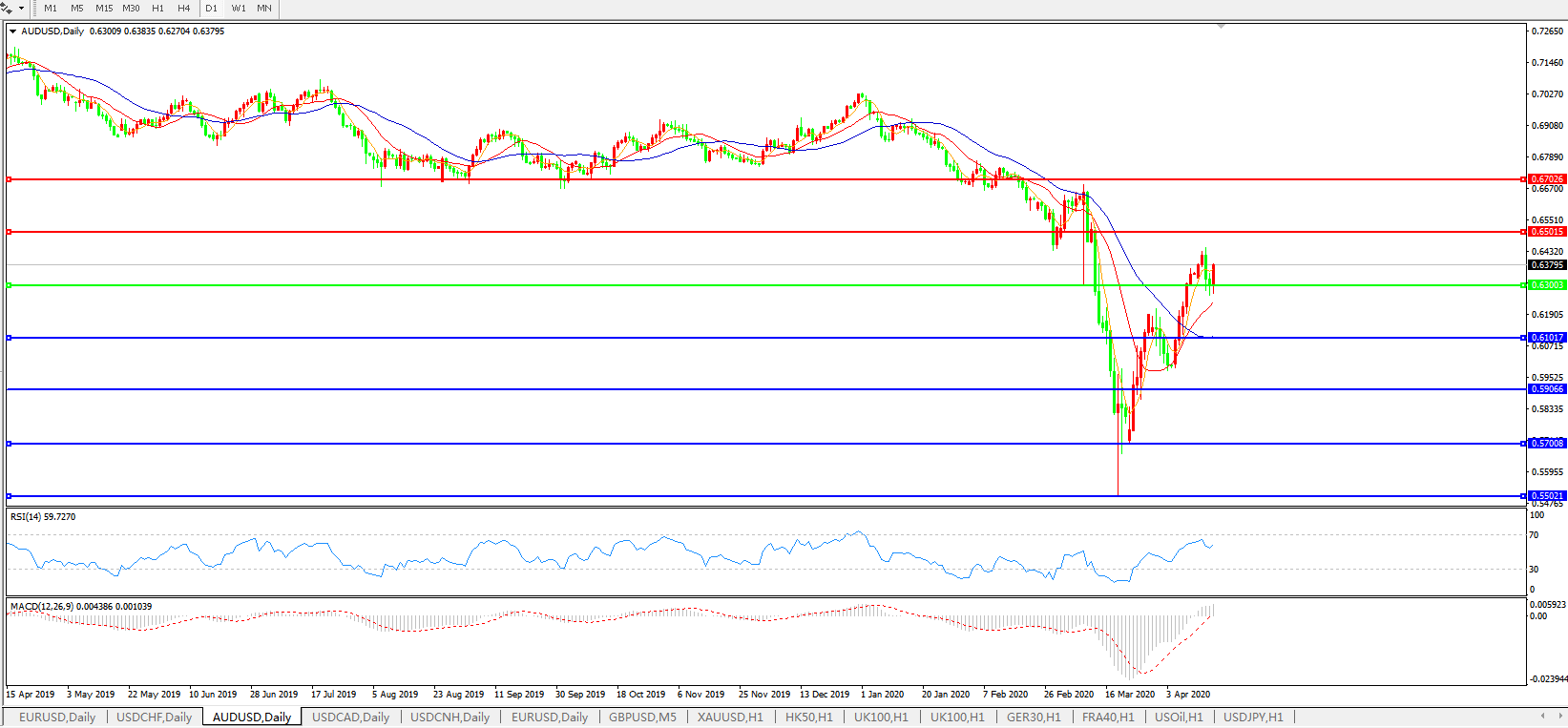 澳元兑美元AUDUSD    日线图: