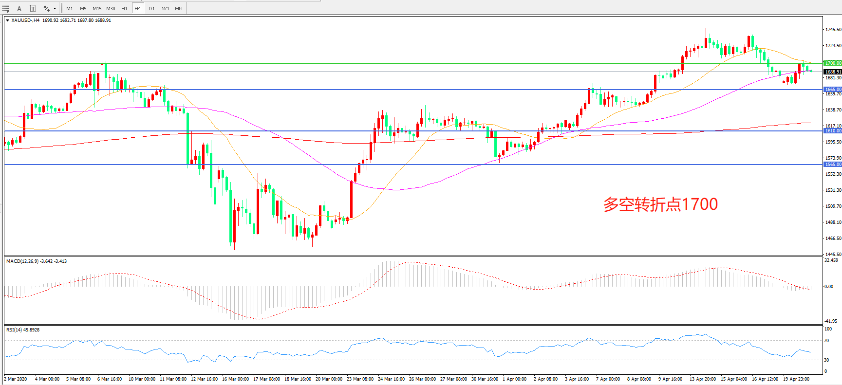 多空转折点:1700.00