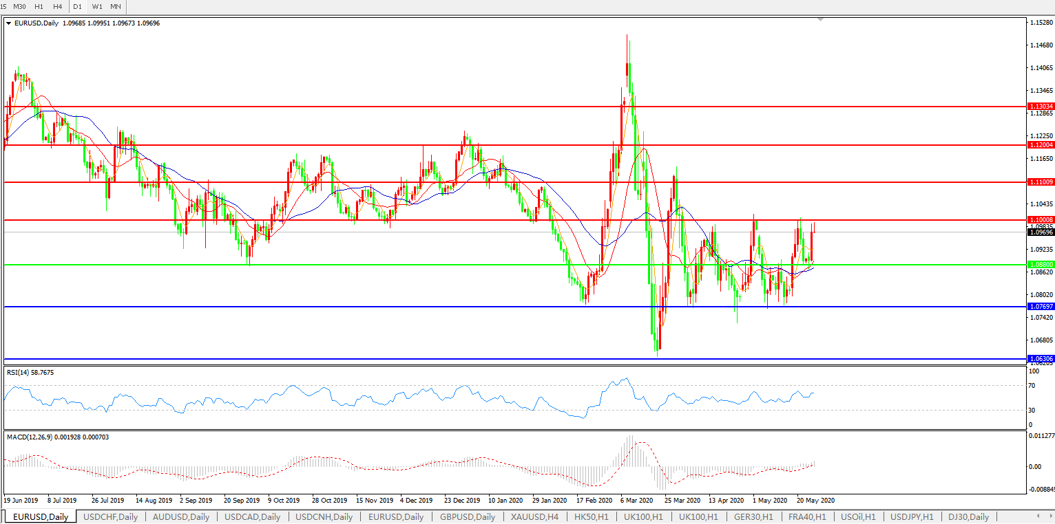 交易策略:1.0880上方看涨,目标1.1000、1.1100