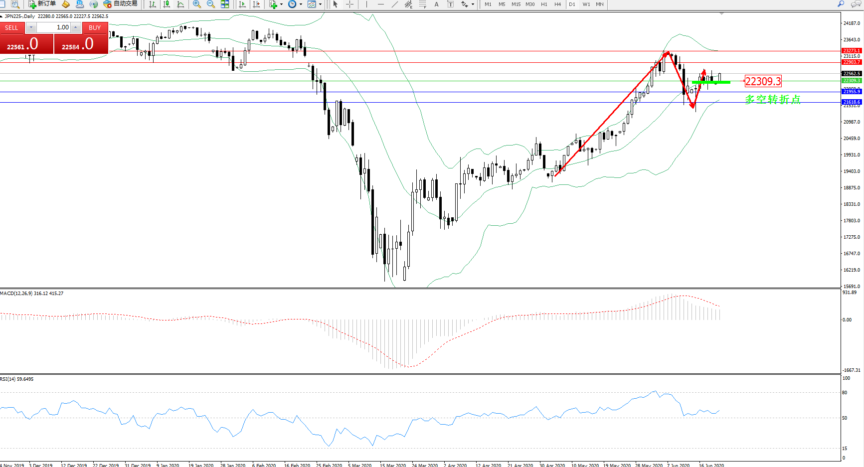 日经指数JPN225——日K线图显示: