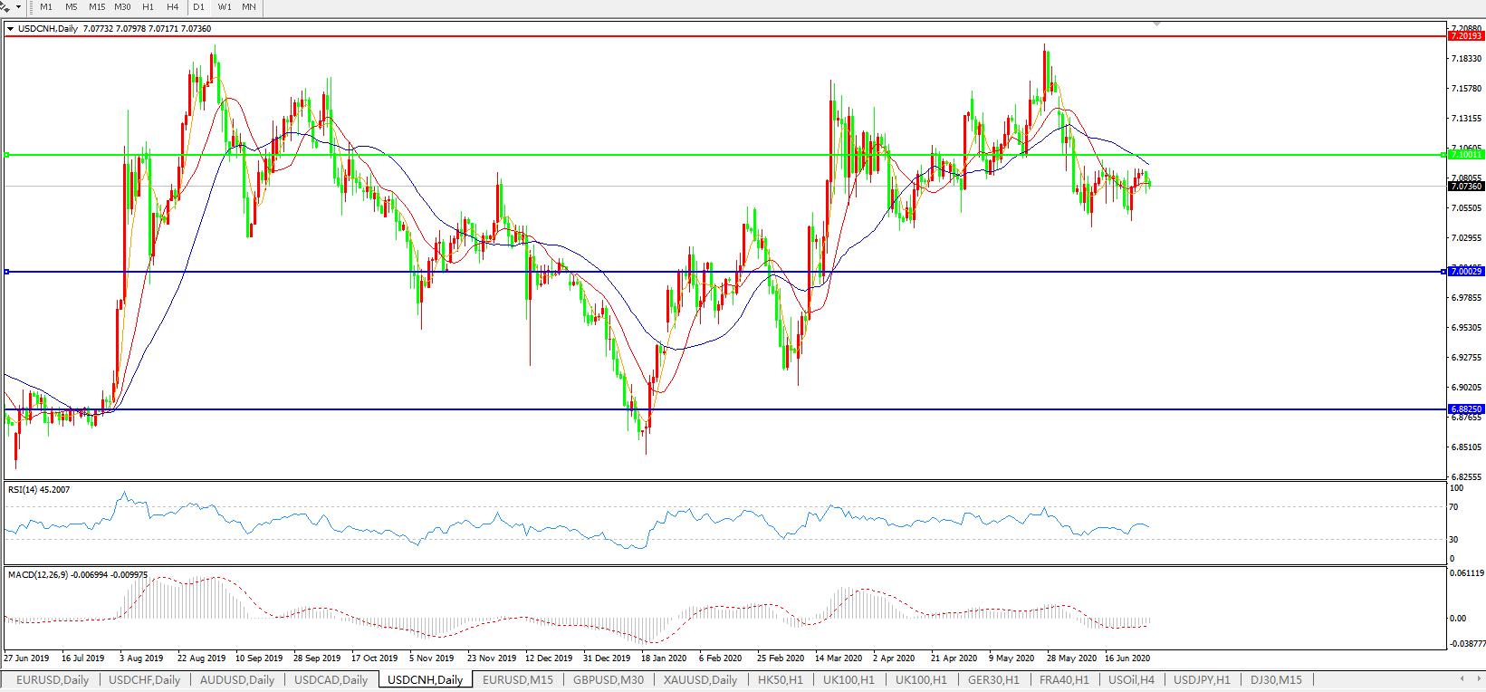美元兑人民币USDCNH 日线图: