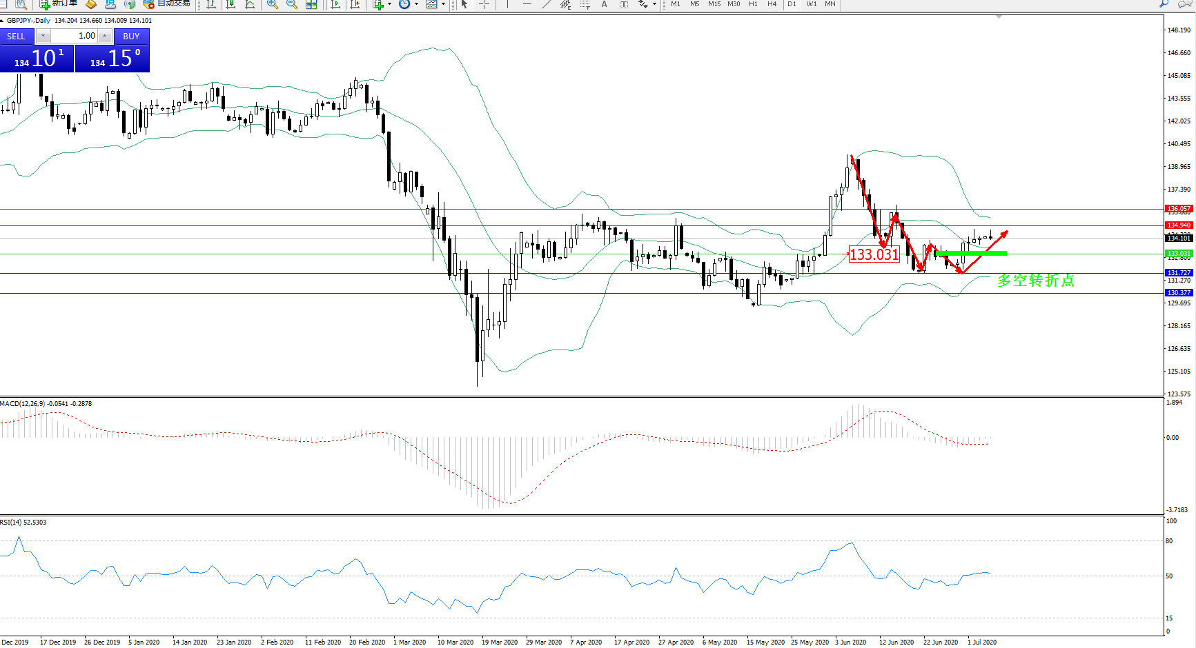 交易策略:133.031上方看涨,目标134.940136.057