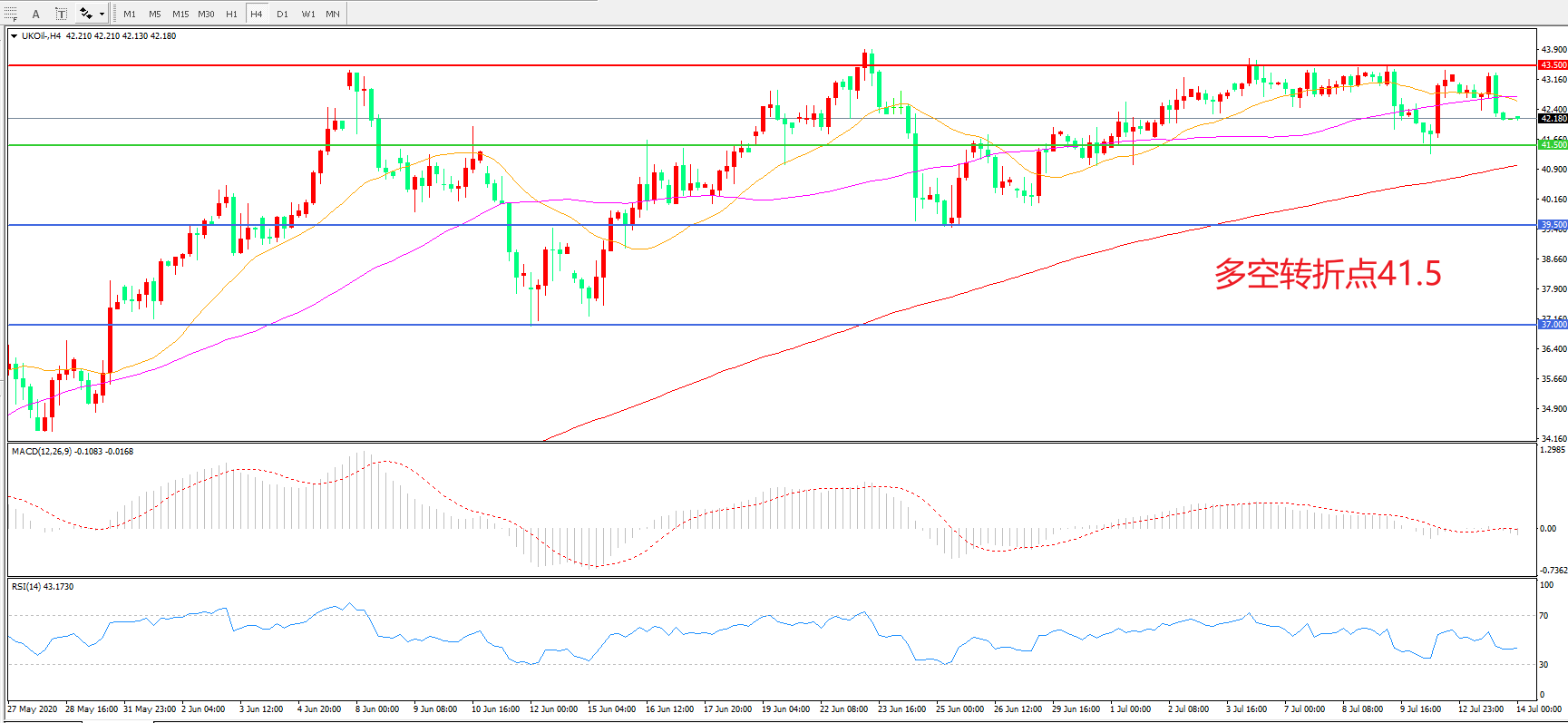 交易策略: 在41.50之上看涨,目标43.50 47.00