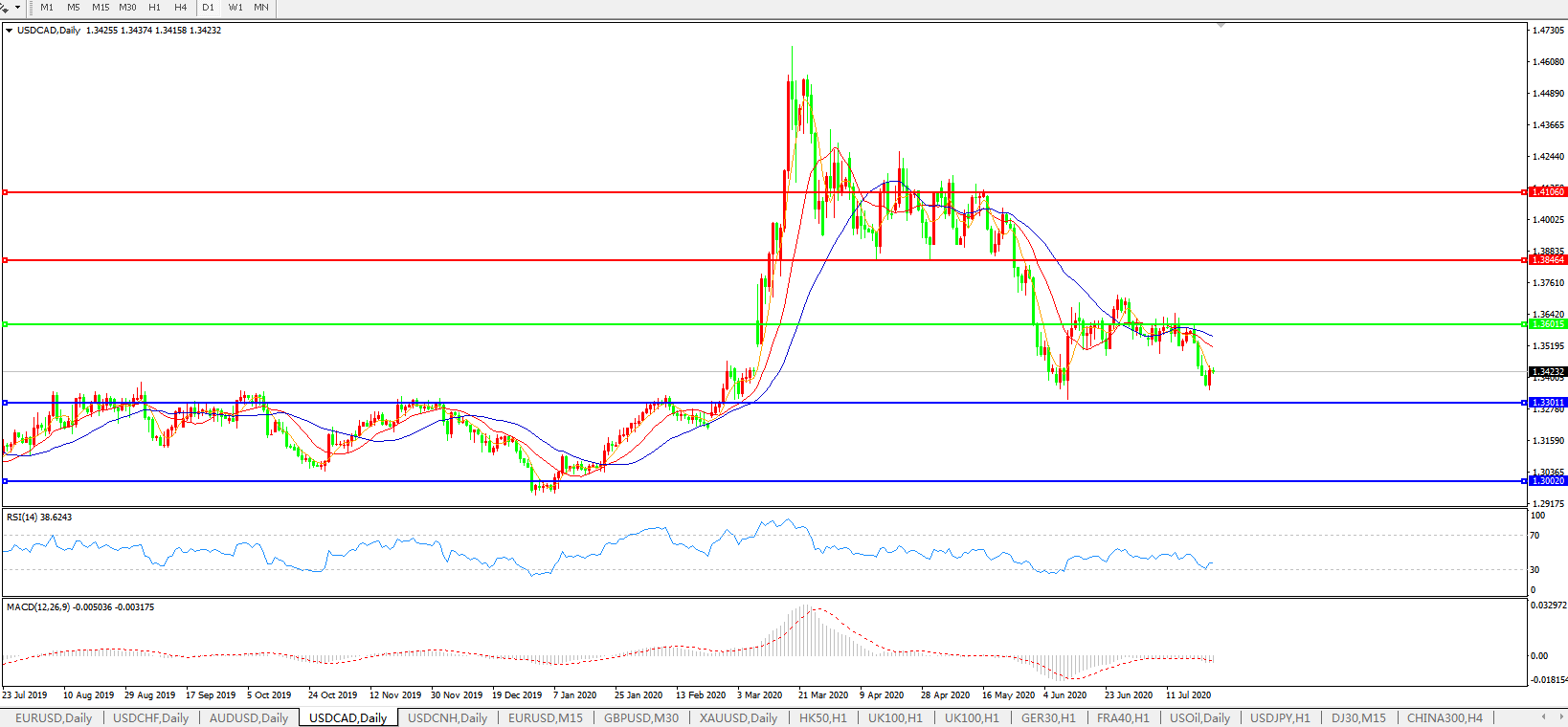 美元兑加元USDCAD    日线图: