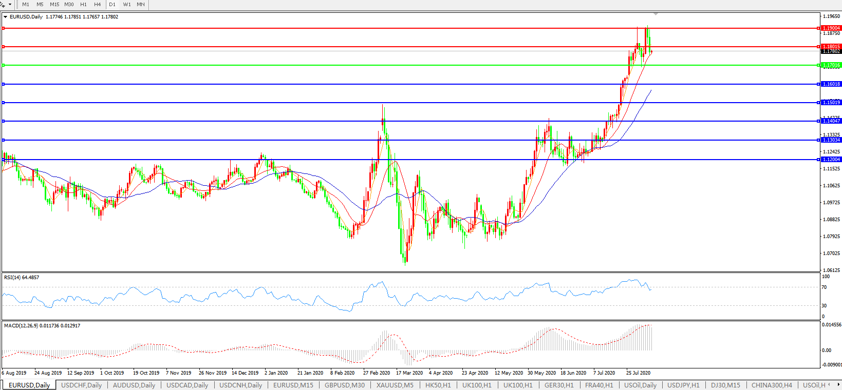 欧元兑美元EURUSD   日线图: