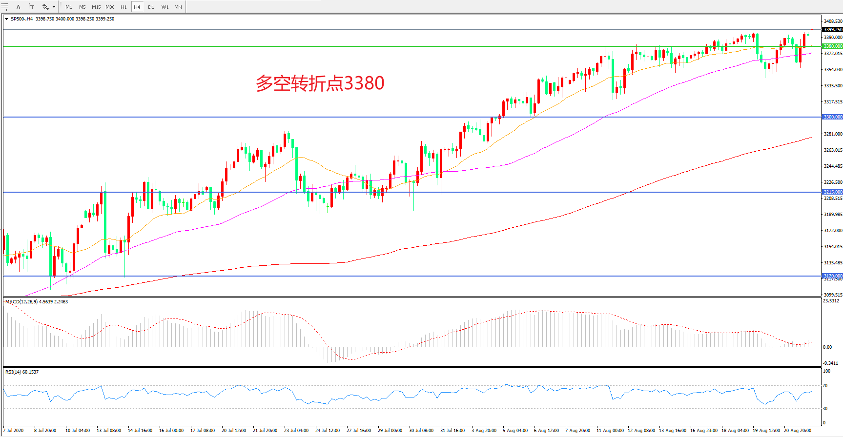 多空转折点:3380.00