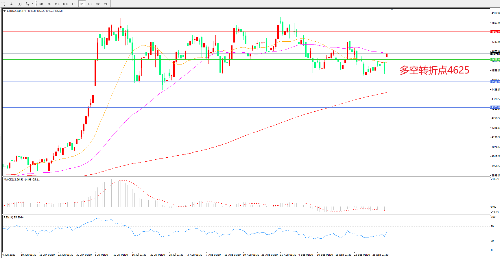 多空转折点:4625.00