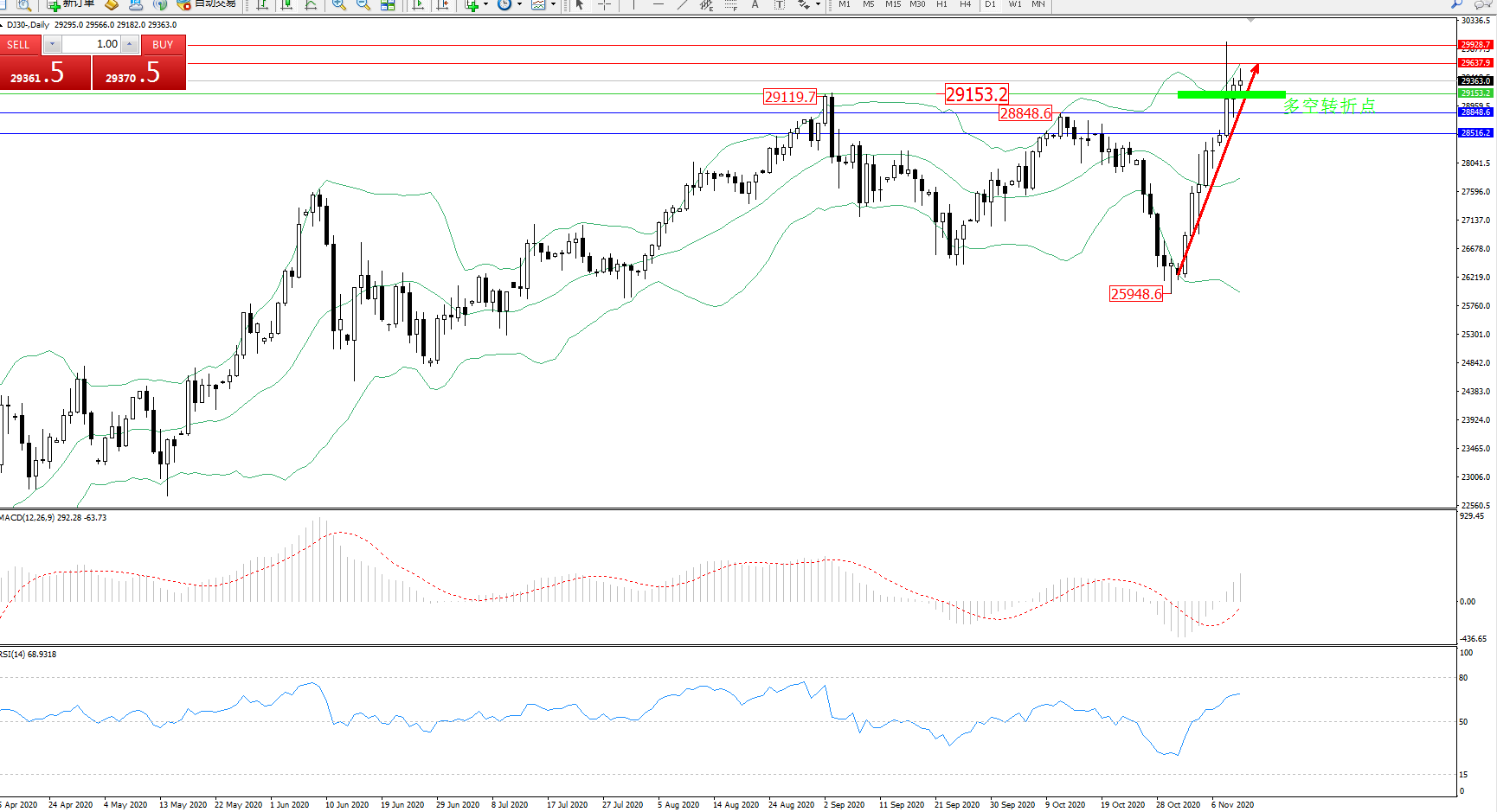 技术点评:多头动力强势拉升突破布林带指标上轨后出现短暂回撤,但多头动力未见减弱态势,后续有进一步上扬走势,布林带指标呈张口走势后开始有收口迹象,前期高位破位后持续走强中,MACD指标低位多头动力持续震荡上扬突破0轴线进入多头区域上行,RSI指标处于50均衡线上方多头区域持续震荡上扬态势良好;