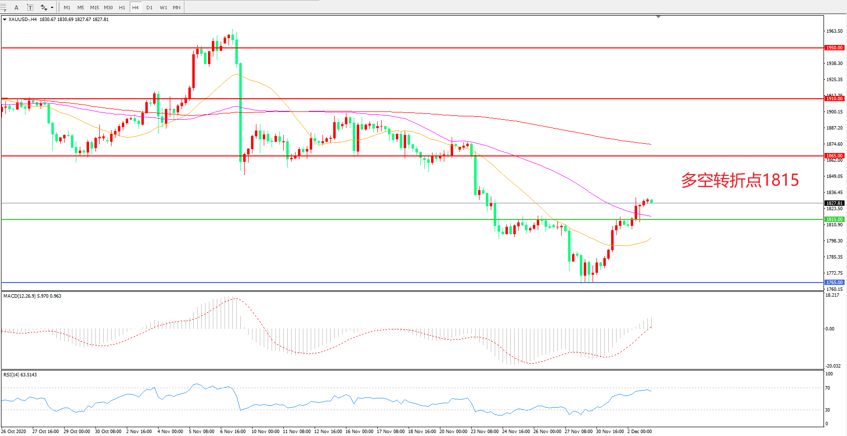 交易策略:在1815.00之上看涨,目标1860.00 1910.00