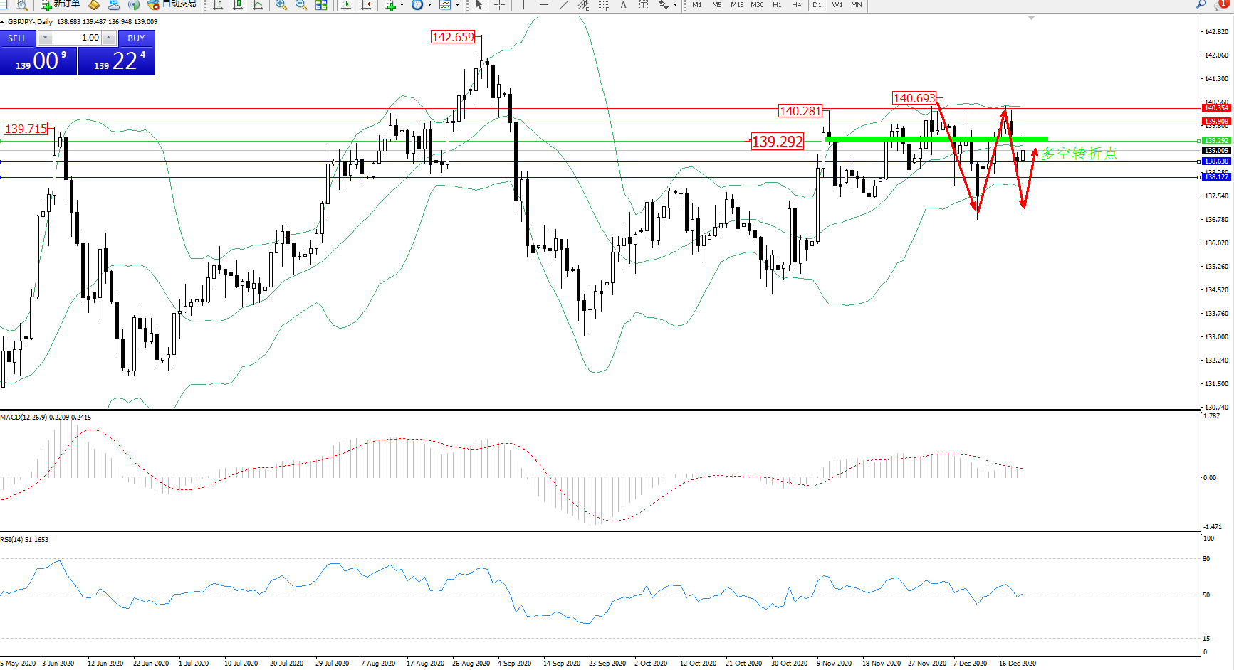 备选策略:139.292上方看涨,目标139.908、140.354