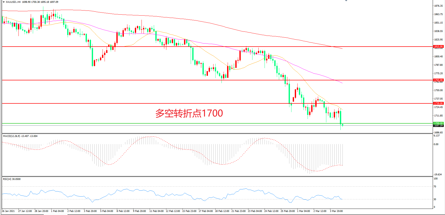 多空转折点:1700.00