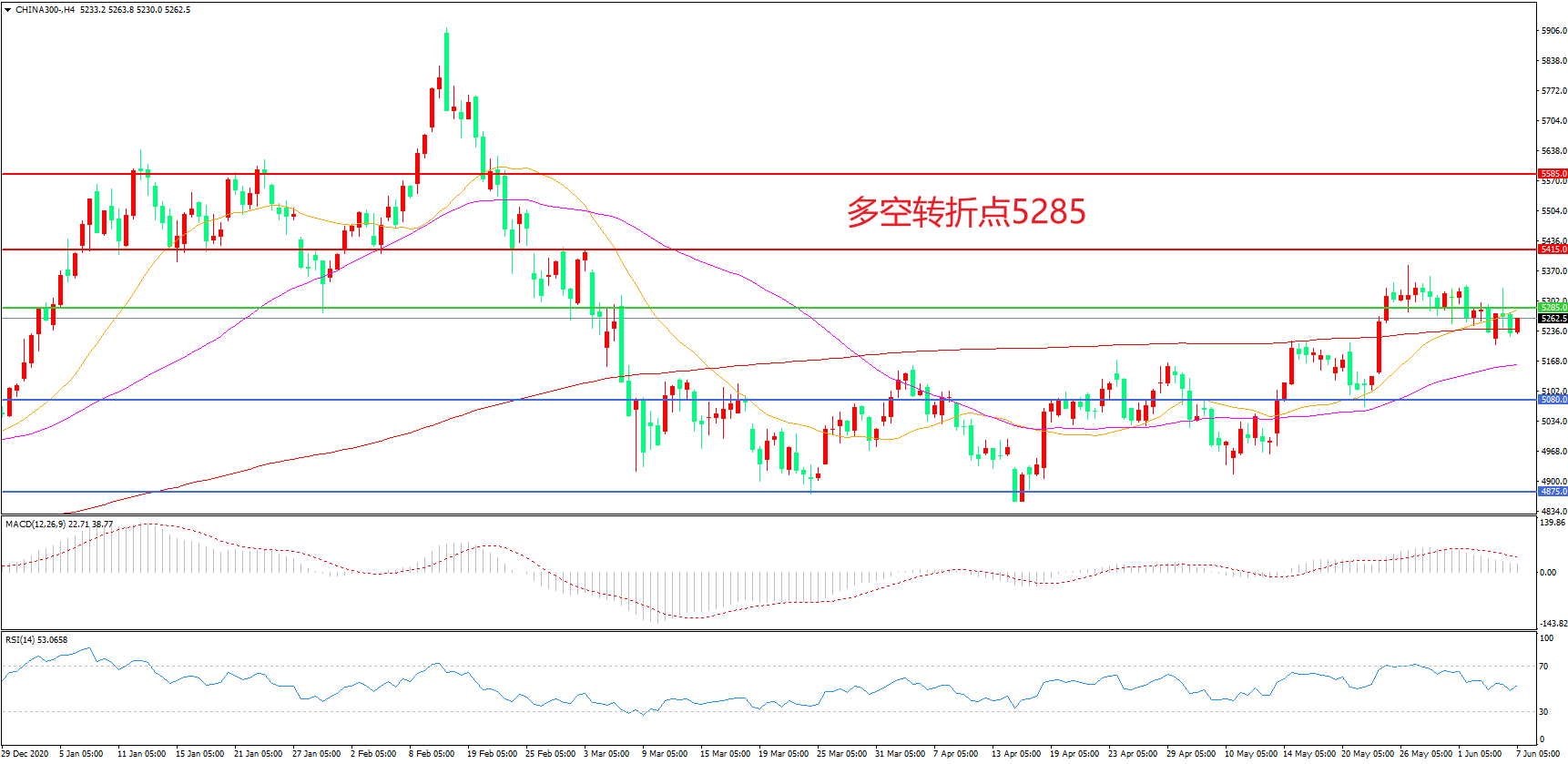 多空转折点:5285.00