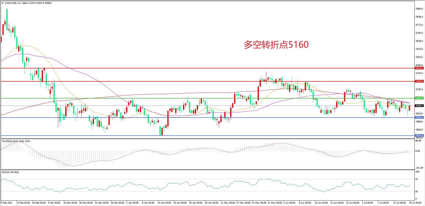 支撑位:5000.00    4850.00