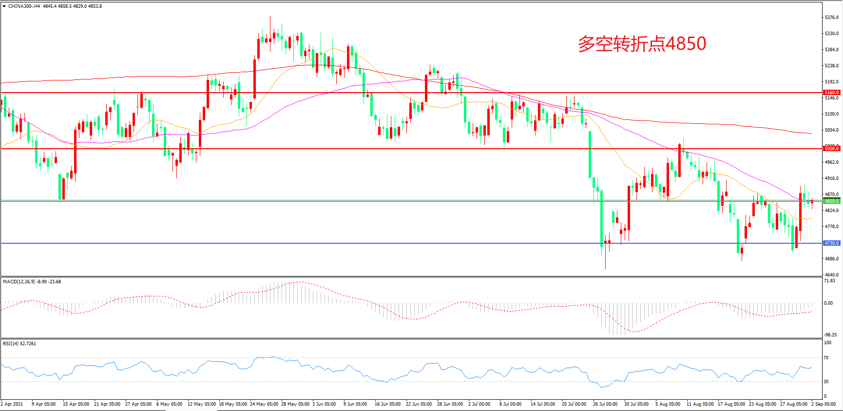 多空转折点:4850.00