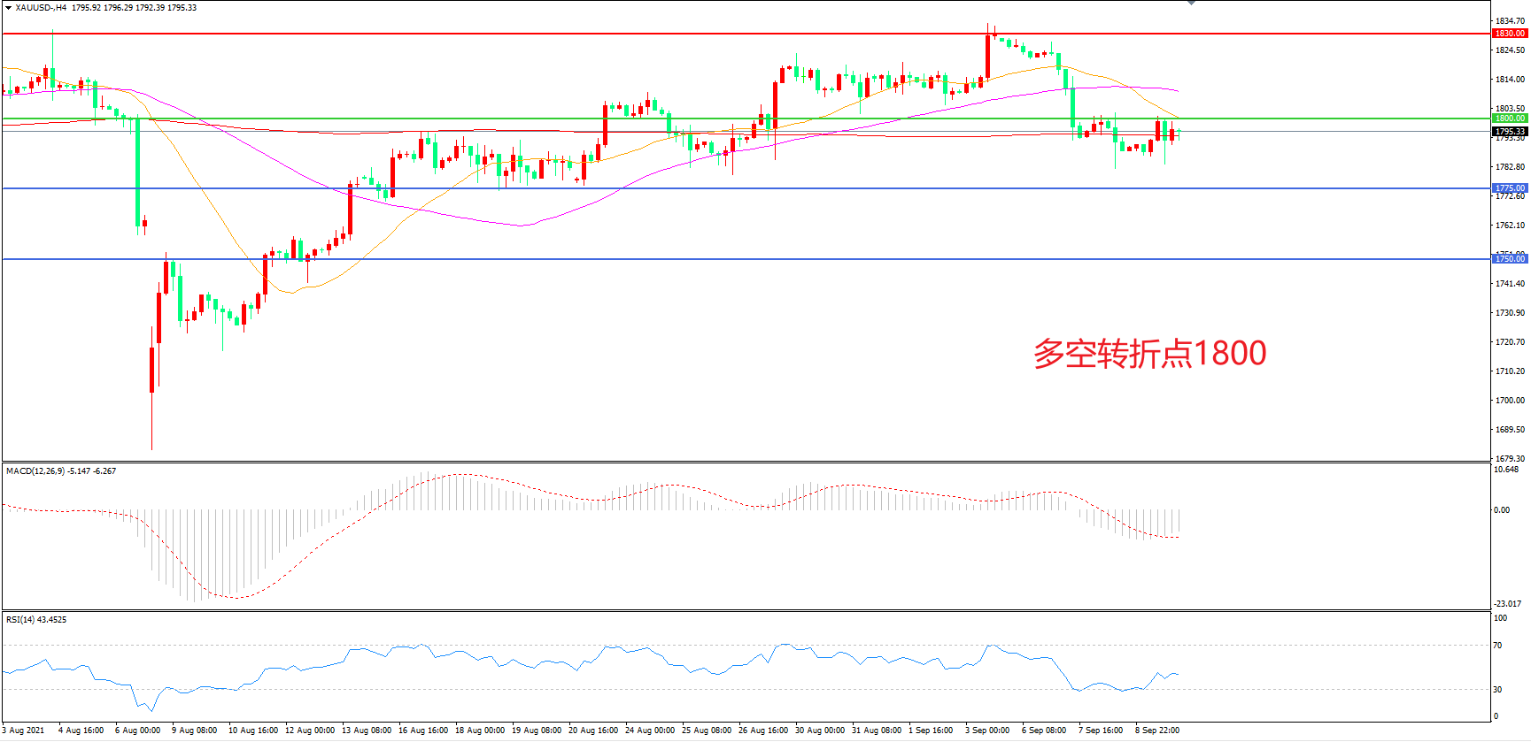 多空转折点:1800.00