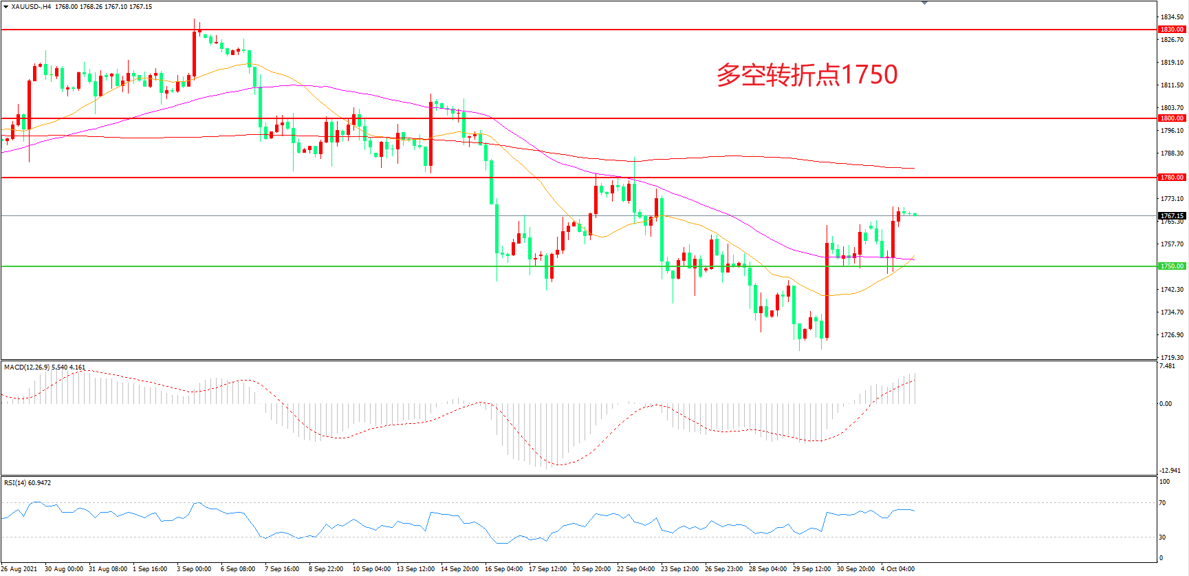 交易策略:在1750.00之上看涨,目标1780.00 1800.00