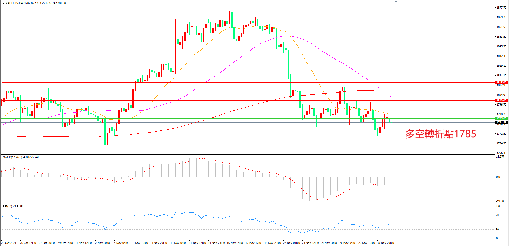 多空转折点:1785.00