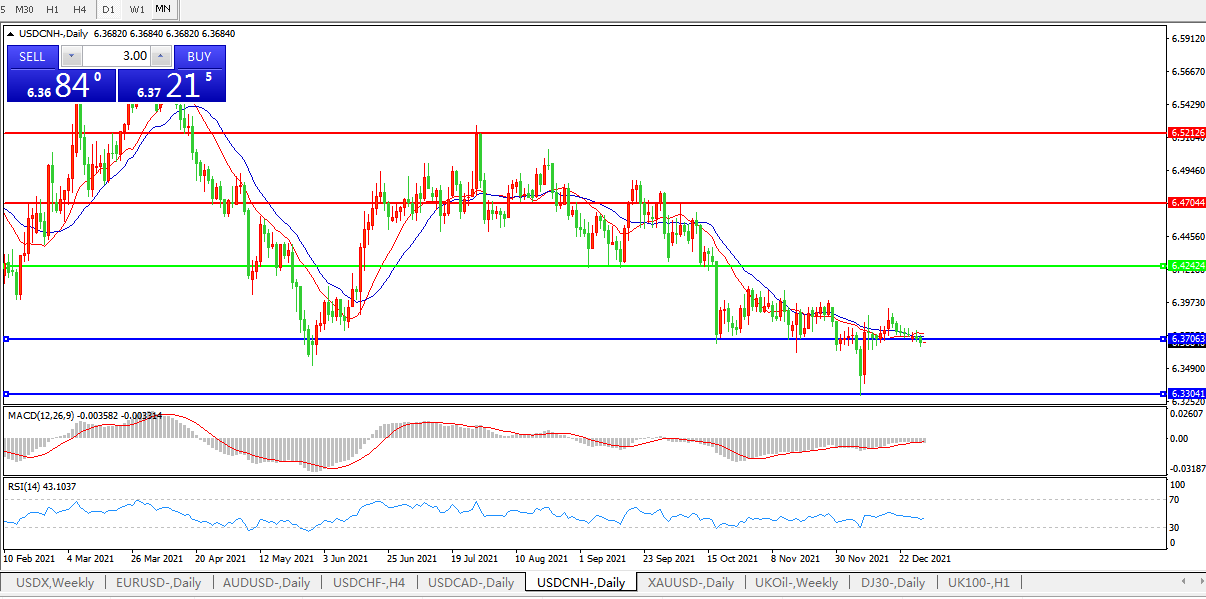 备选策略:在6.4240之上,看涨,目标价位为6.4700,然后为6.5210。