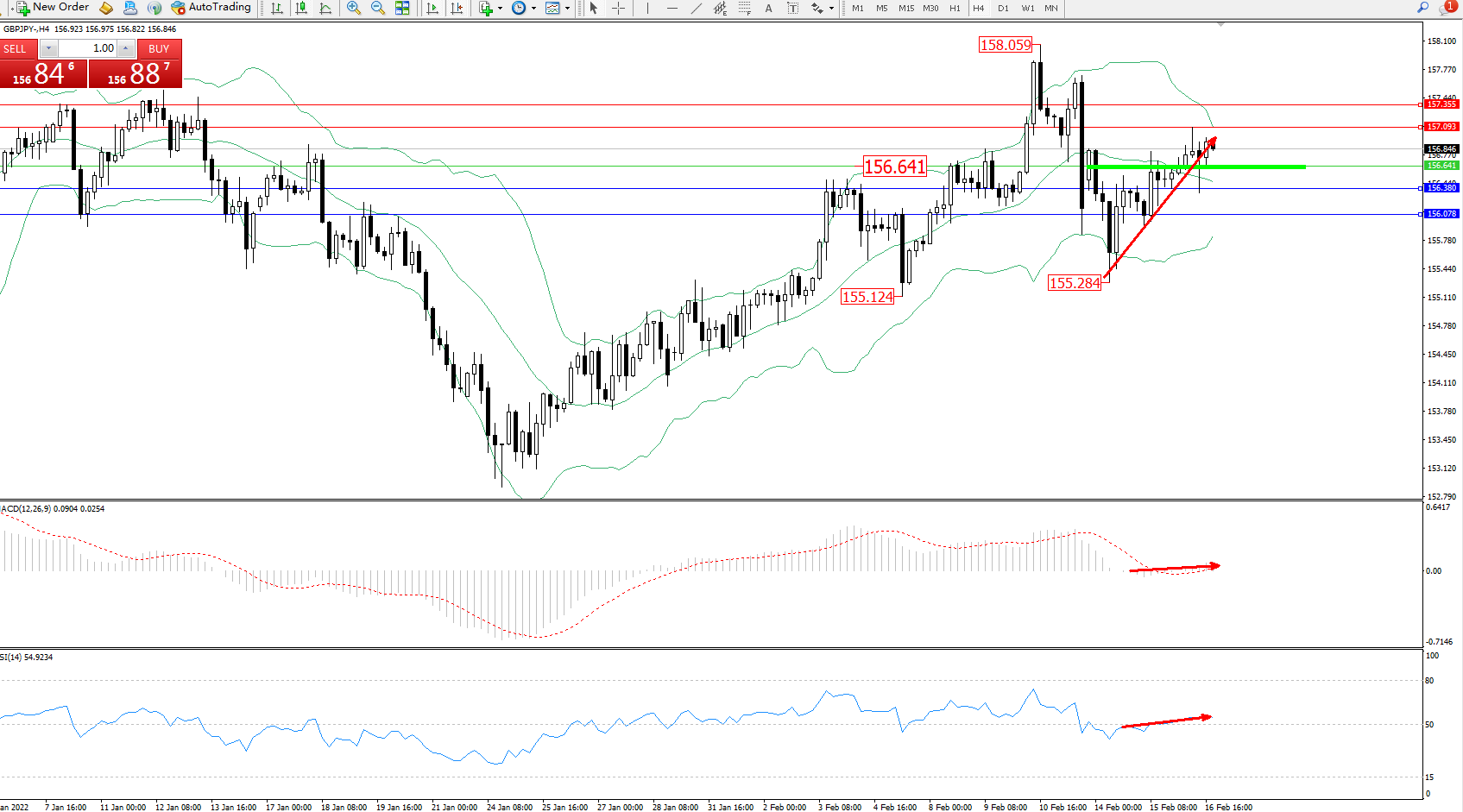 交易策略:156.641上方看涨,目标157.093157.355