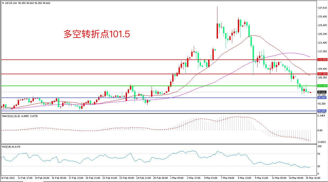 周二(3月15日),伴随俄乌谈判呈现进展、美国有望解除委内瑞拉原油制裁消息,市场对原油短缺的担忧有所缓解,布伦特原油大幅下挫,收报98.66美元/桶。目前对冲基金正以接近创纪录的速度清算石油头寸,其交易量相当于1.42亿桶石油,短期内油价可能继续承压。