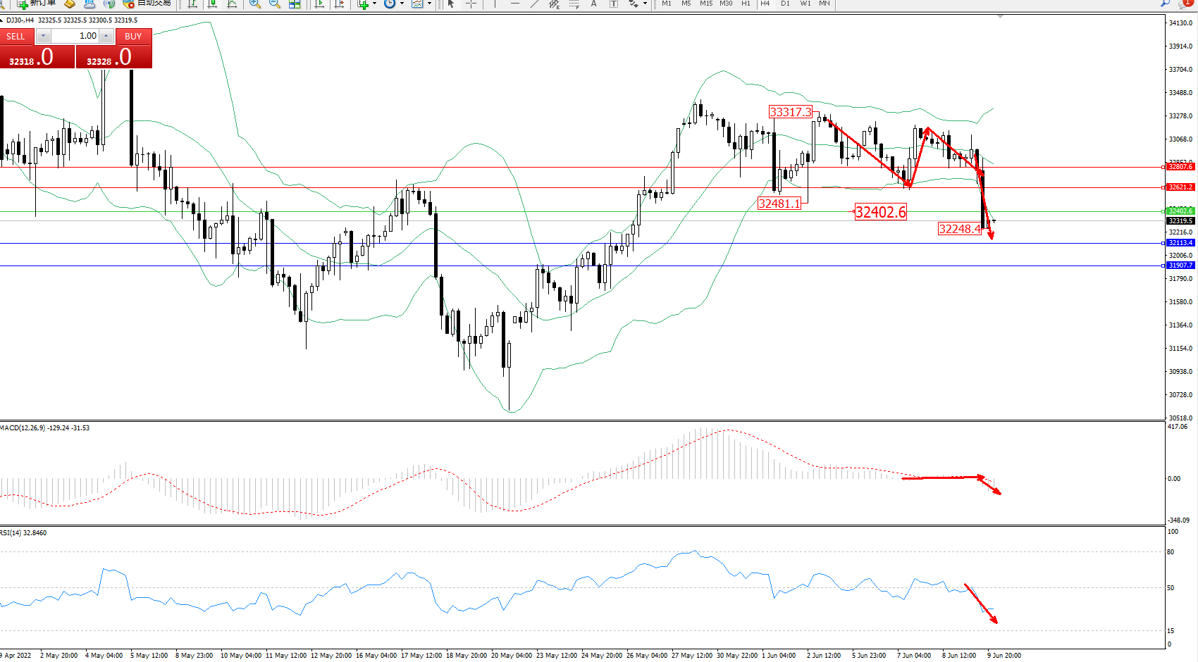 交易策略:32402下方看跌,目标32113、31907