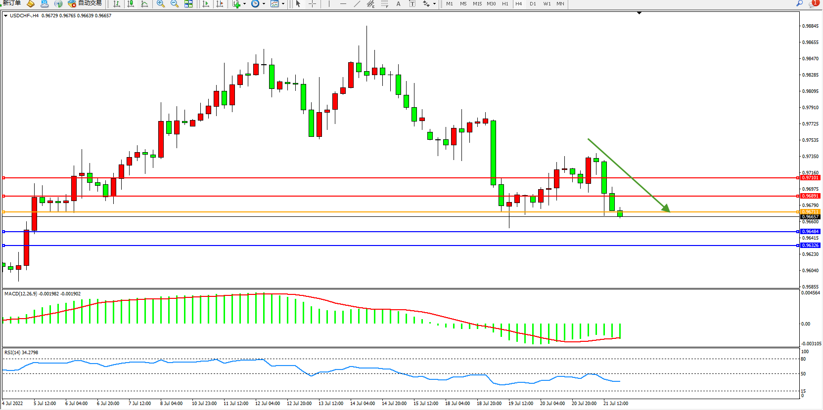 美元瑞郎USDCHF——4小时K线图显示: