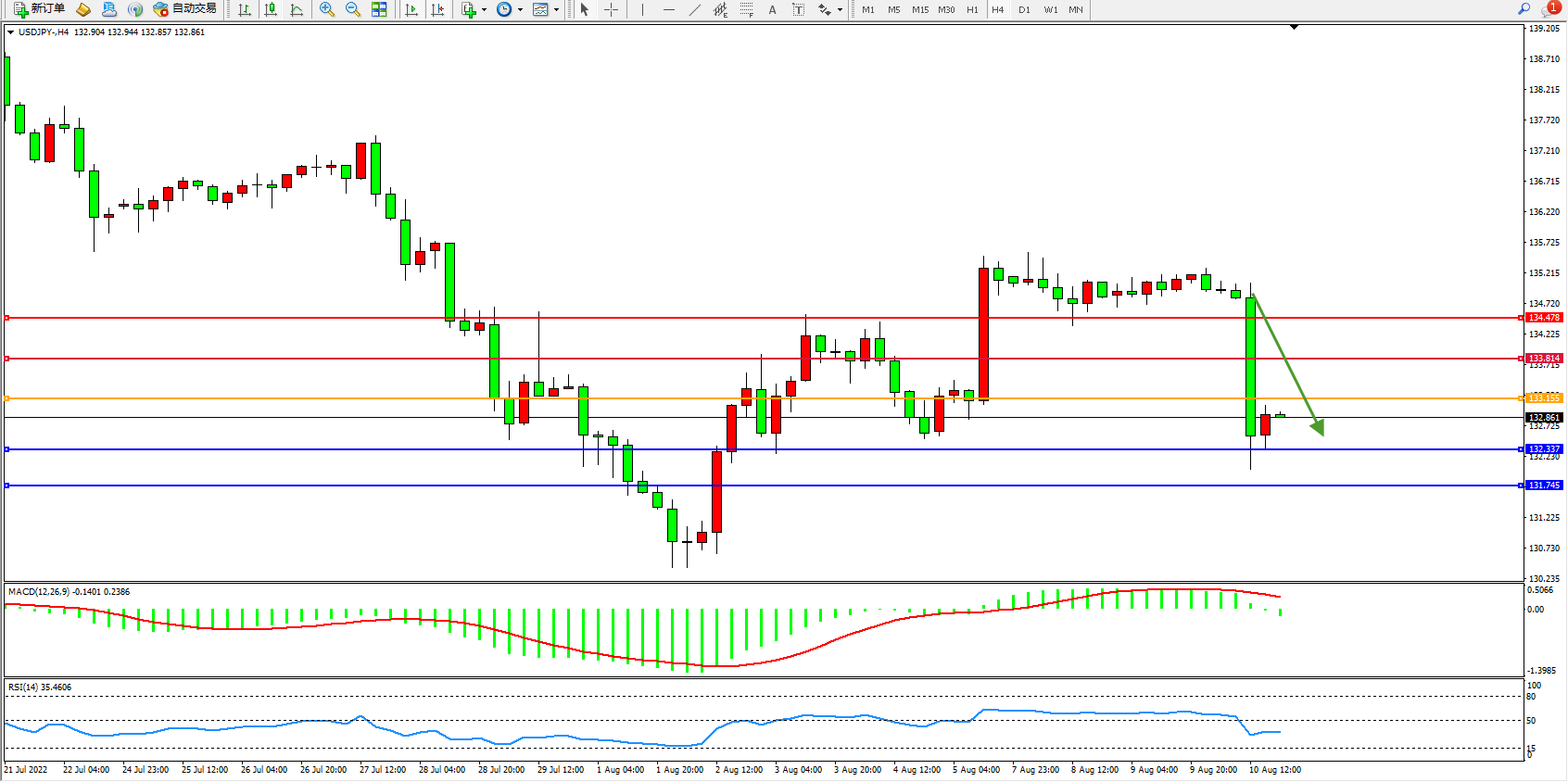 支撑位:132.337、131.745