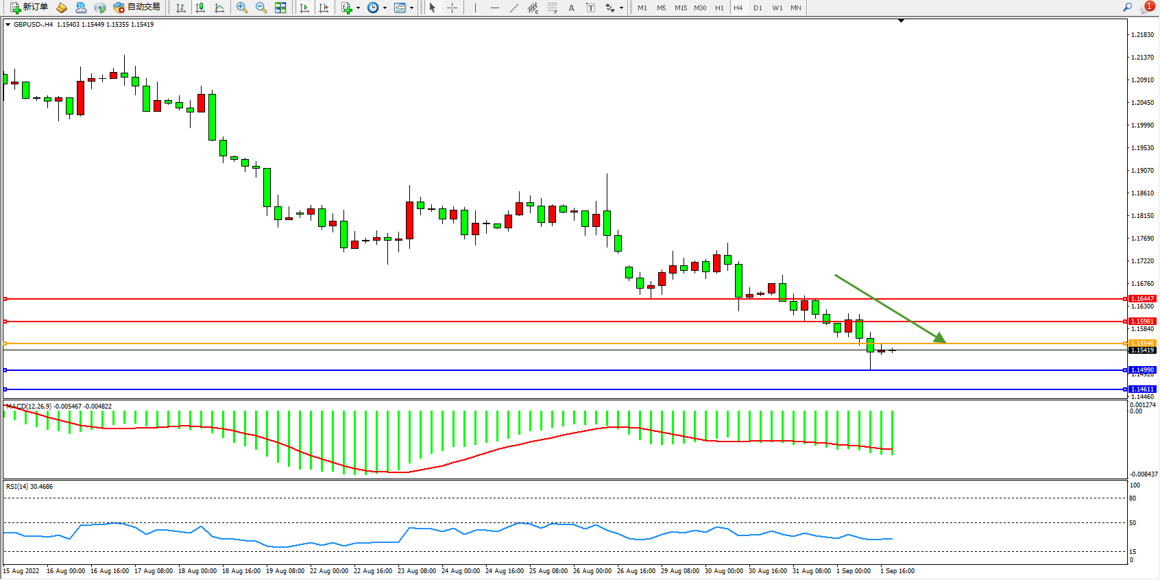 英镑美元GBPUSD ——4小时K线图显示:
