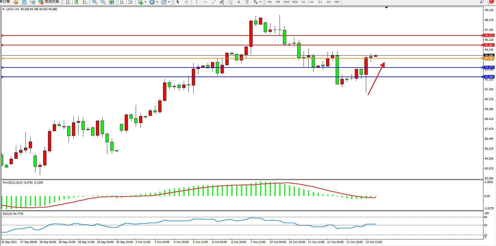 布油维持94.688附近震荡,美国截至10月7日当周EIA原油库存变动实际公布增加988 万桶,预期增加175桶,前值减少135.6万桶。