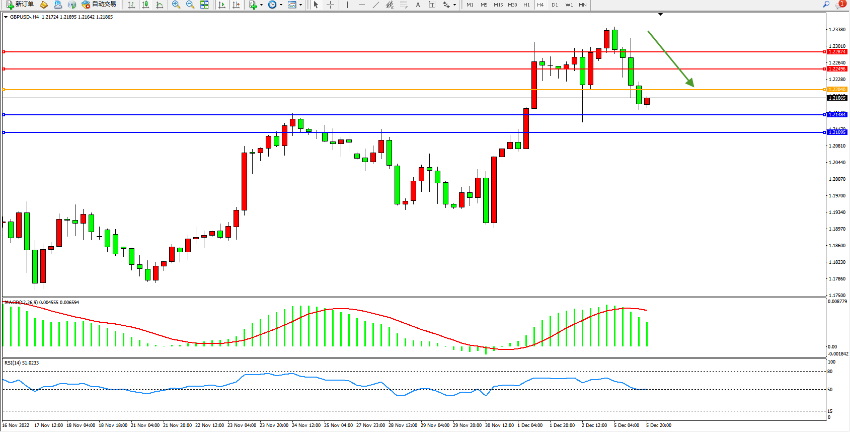备选策略:1.22040上方看涨,目标1.22496、1.22874