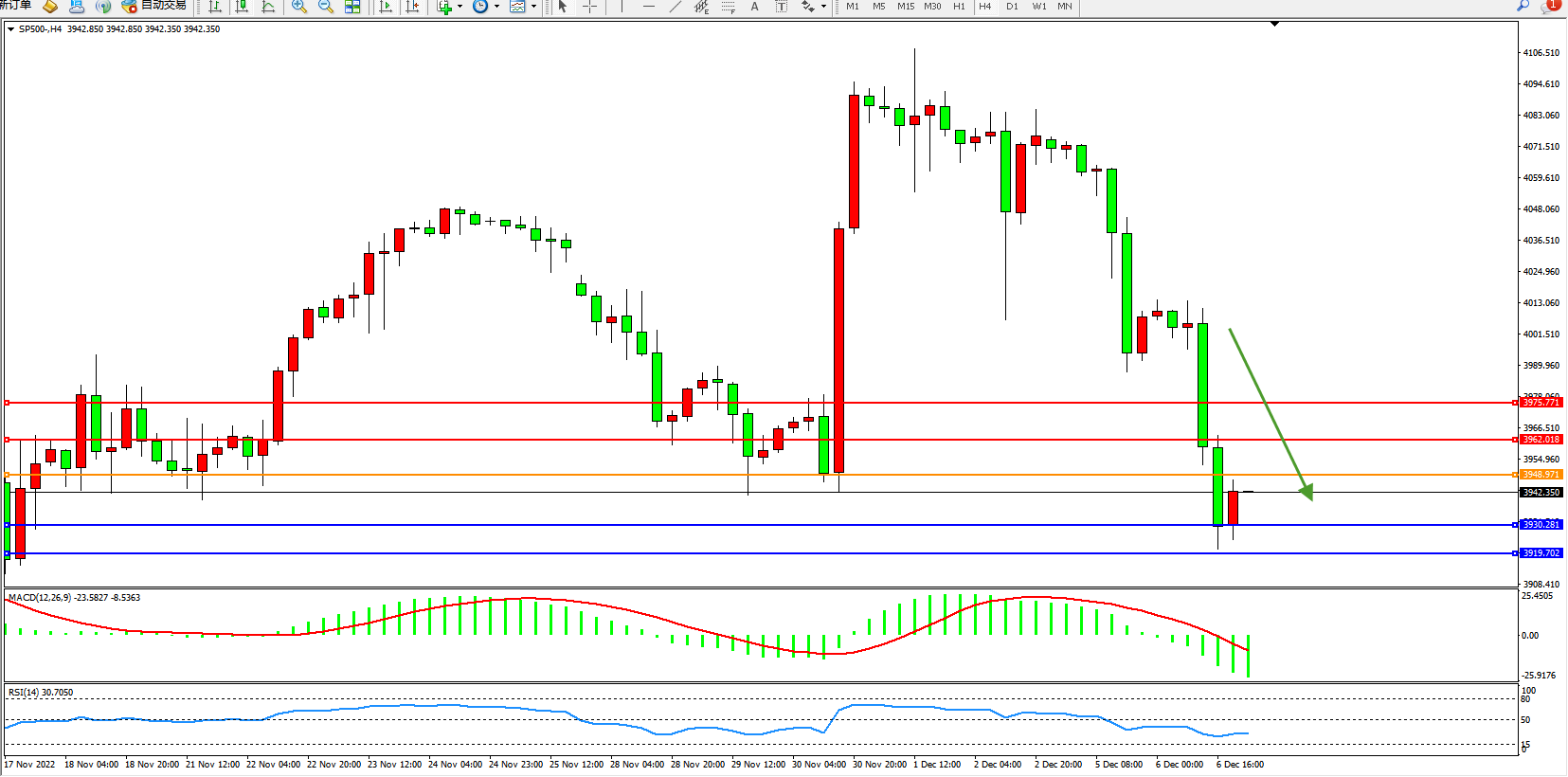 标普SP500——4小时K线图显示: