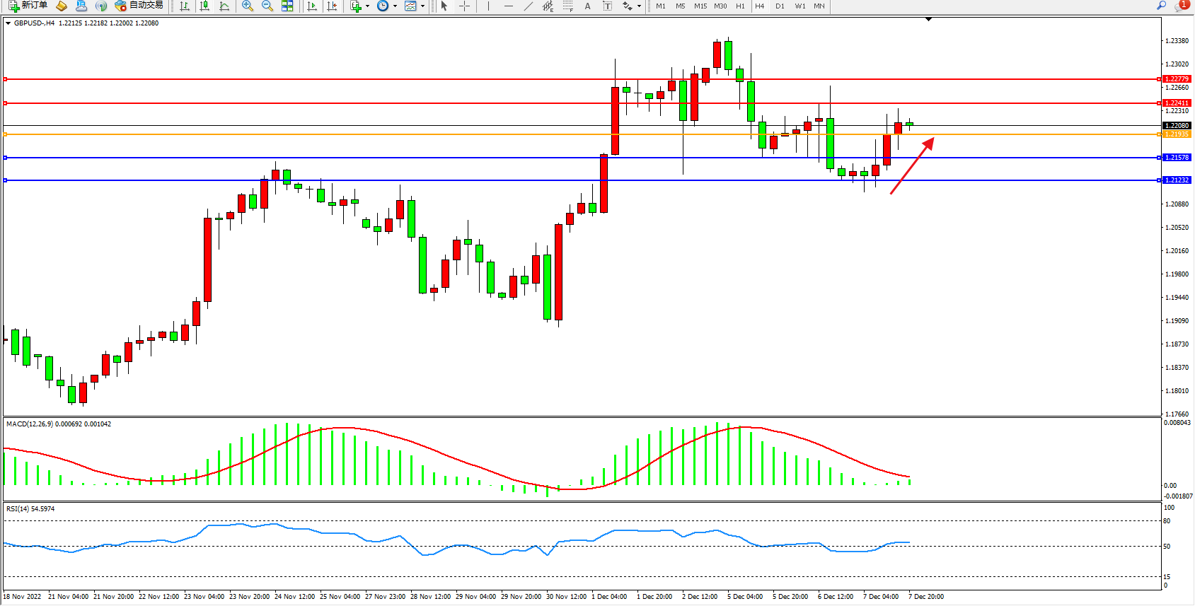 英镑美元GBPUSD ——4小时K线图显示: