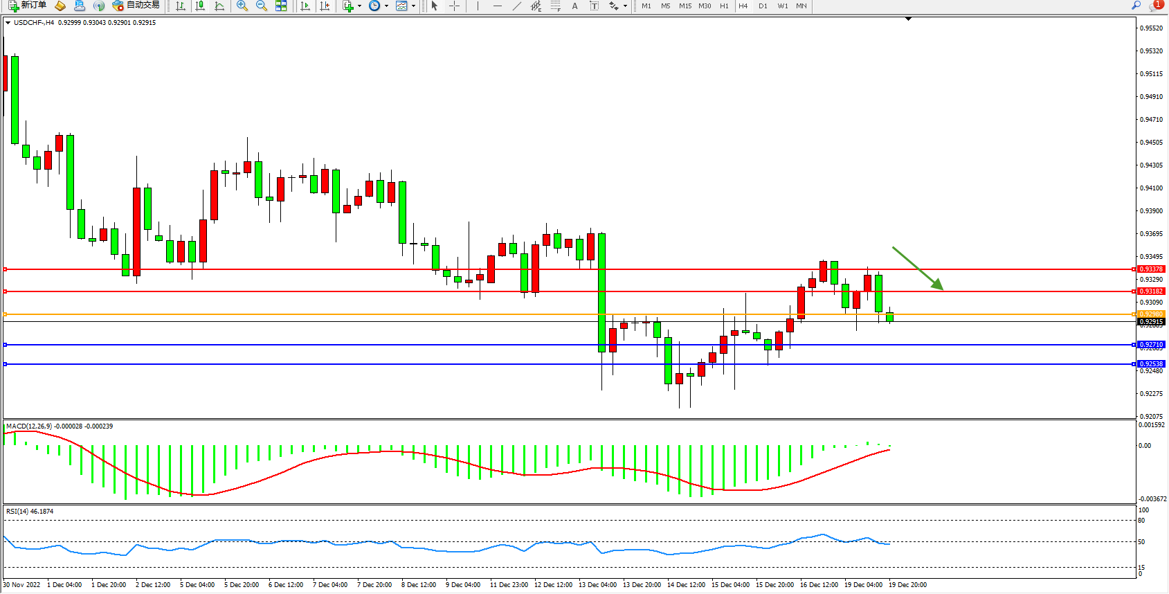 美元瑞郎USDCHF——4小时K线图显示: