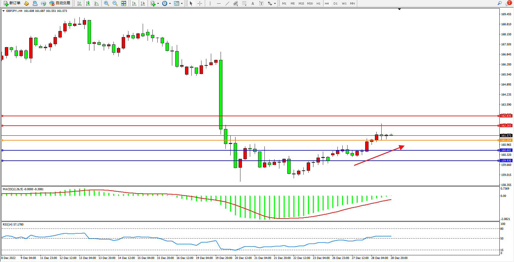交易策略:161.254上方看涨,目标162.203、162.835