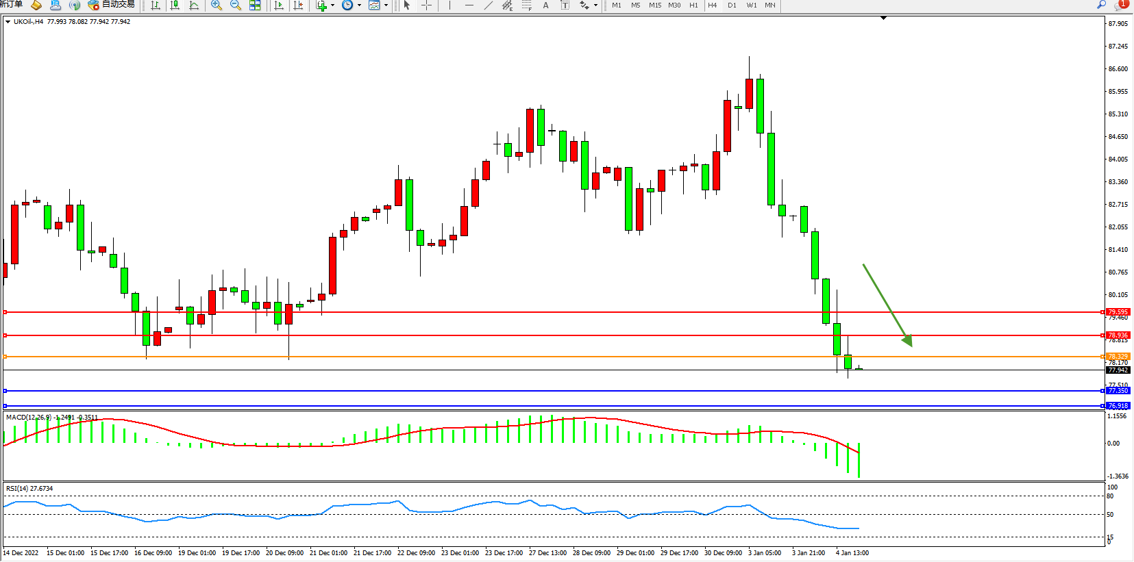 布油UKOil——4小时K线图显示: