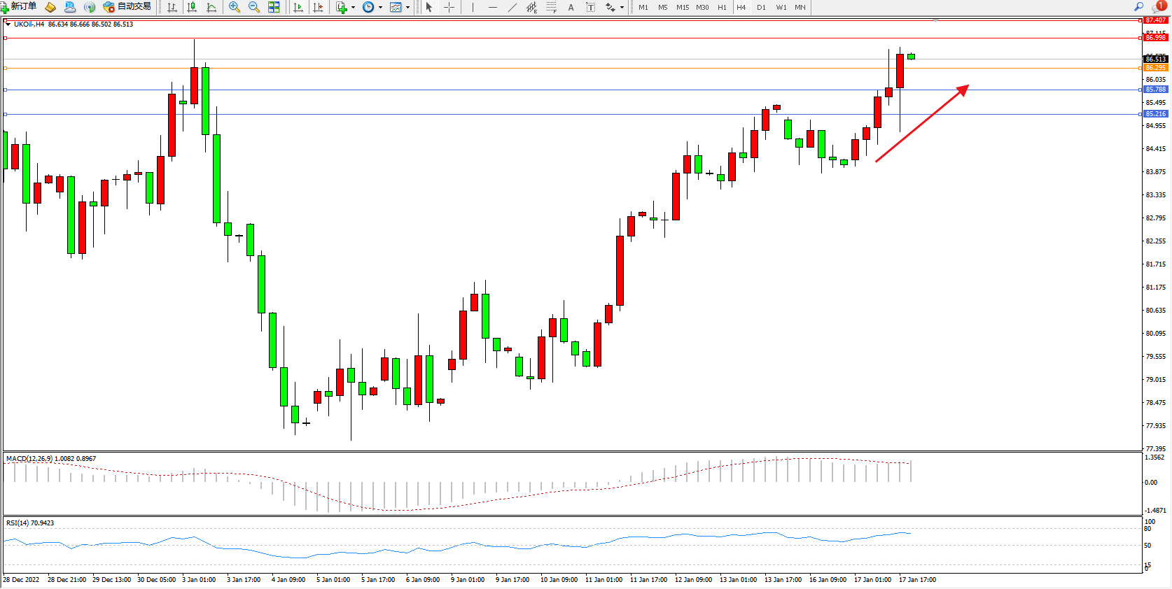 布油UKOil——4小时K线图显示: